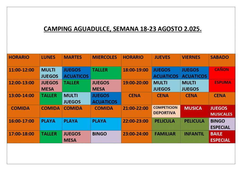 Como ves, desde Camping Playa Aguadulce, tenemos muy en cuenta a los niños, así como la ocupación del tiempo de los mismos en vacaciones dando así a los padres tiempo para disfrutar del tiempo de ocio que ofrecemos enfocado a los adultos. ¡Llámanos y pide más información!