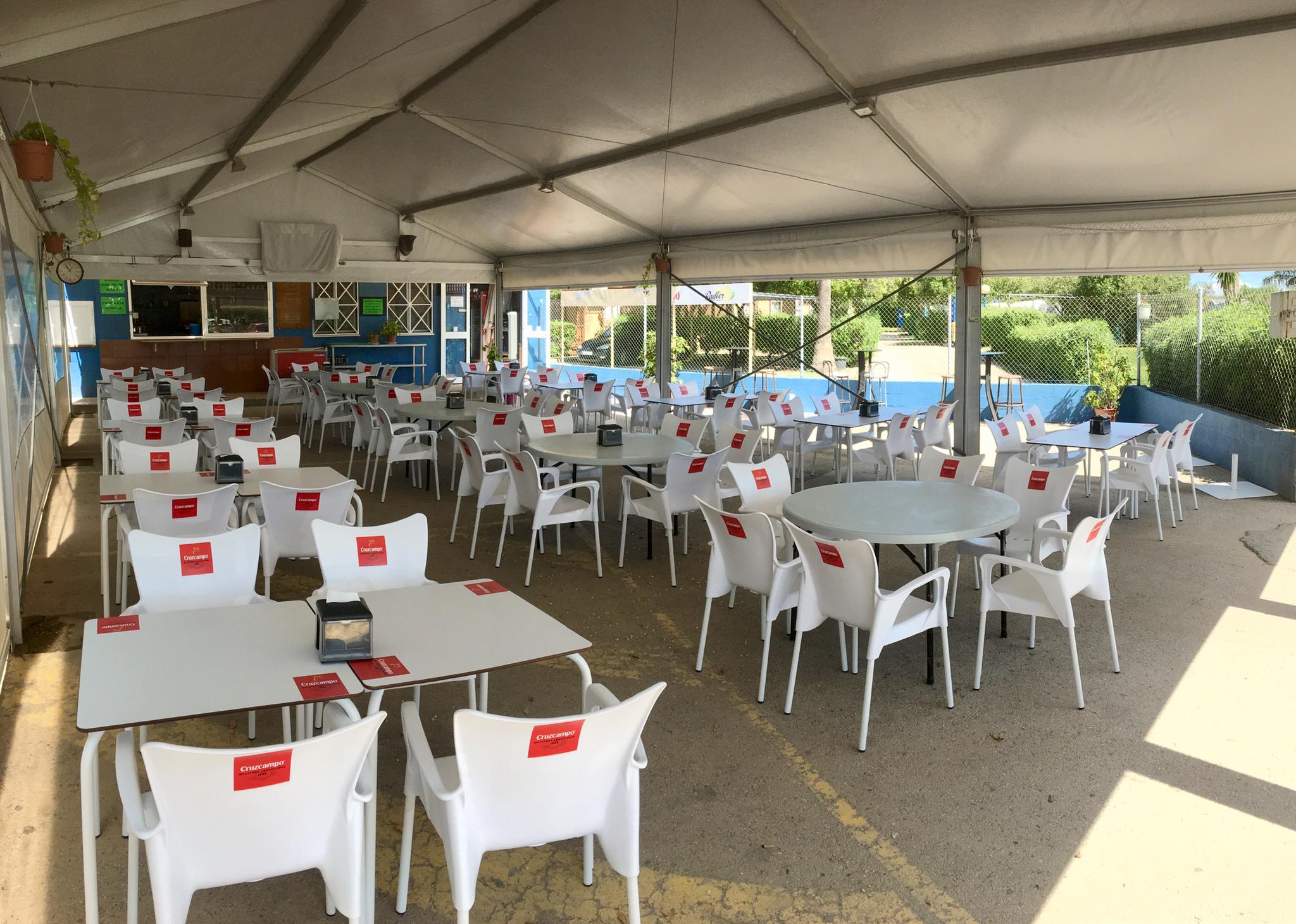 Nuestro restaurante está situado a la entrada del camping, y dispone de una carpa amplia para la atención a clientes. En este espacio también contamos con un bar en el que ofrecemos bebidas frías y comidas refrescantes.
