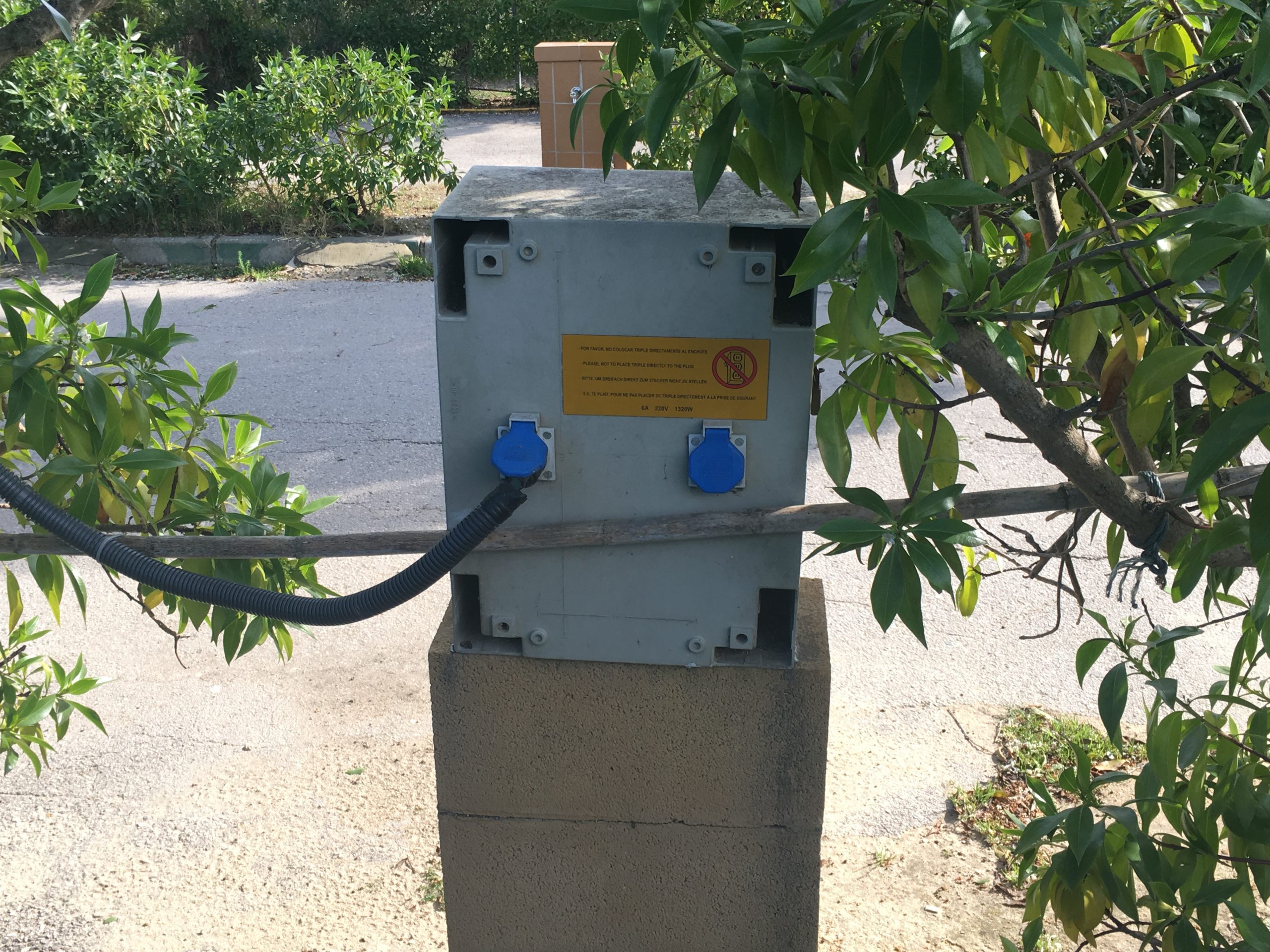 No se tienen tomas de agua en las parcelas, están repartidas por la periferia del camping, con tomas de agua potable y no potable.